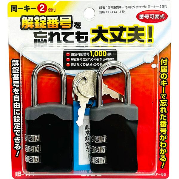 他の画像を見る 解錠番号を忘れても大丈夫!ポストなどに 和気産業 WAKI 非常解錠キー付可変文字合せ錠 同一キー2個付 IB-114 3段 番号可変式 南京錠 価格 ¥ 2,580 税込 カートに入れる お気に入りに登録する