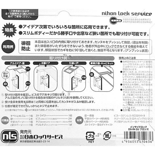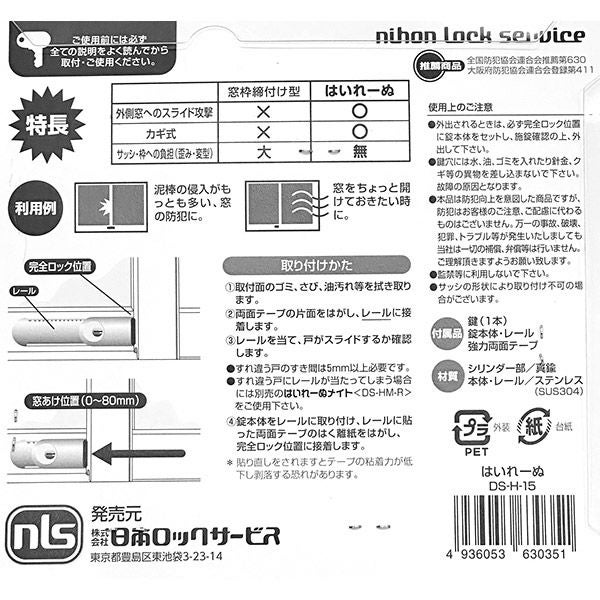 他の画像を見る 強力両面テープで取り付けできる窓用補助錠 日本ロックサービス はいれーぬ カギ付き DS-H-15 窓・サッシ用 補助錠 防犯 価格 ¥ 2,480 税込 カートに入れる お気に入りに登録する