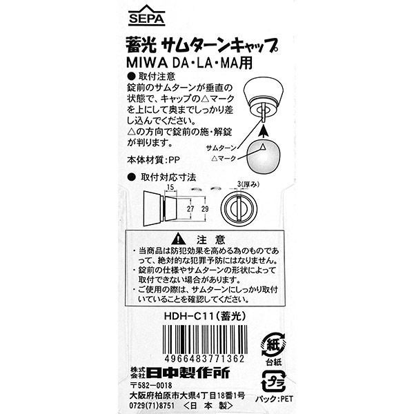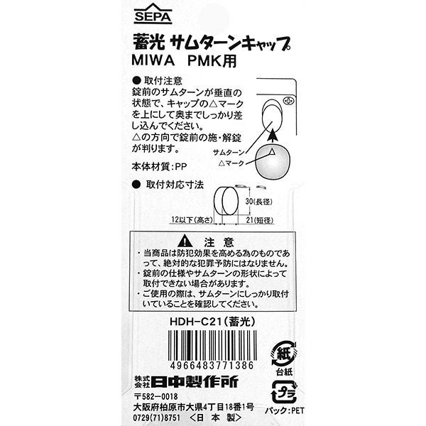 他の画像を見る サムターン回し不正開錠対策 日中製作所 蓄光 サムターンキャップ MIWA PMK用 HDH-C21 サムターン回し防止 カバー 価格 ¥ 780 税込 カートに入れる お気に入りに登録する