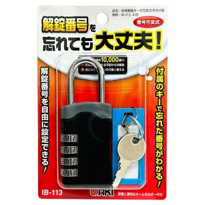 和気産業 WAKI 非常解錠キー付可変文字合せ錠 IB-113 4段 番号可変式 南京錠