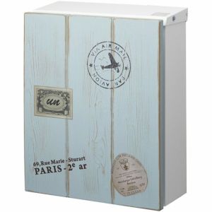 スタンプをあしらった木目調パネルは、トランクをイメージ。旅をしてやってくる手紙への想いを表現しました。