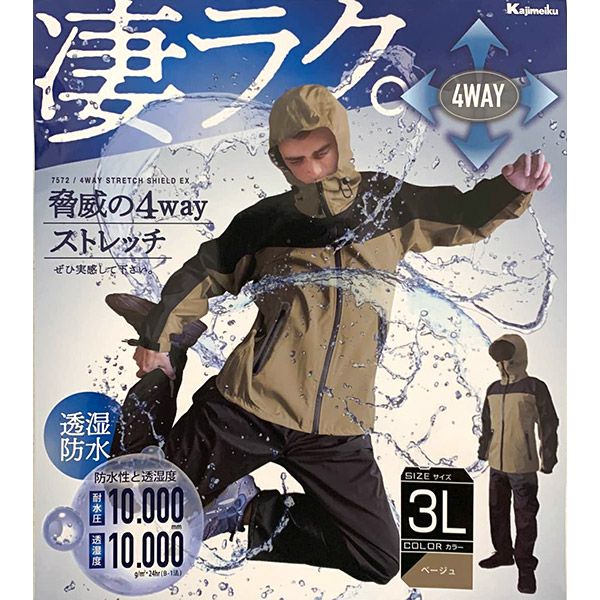 他の画像を見る 凄らく。脅威の4wayストレッチ 即日出荷 カジメイク 4WAY ストレッチシールド EX ベージュ L 7572 レインスーツ 上下 雨合羽 価格 ¥ 4,380 税込 カートに入れる お気に入りに登録する