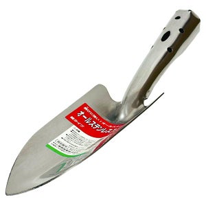 ステンレス製でサビに強く土すくいにも穴掘りにも最適