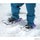 靴のつま先をバインディングにかけロック解除のひもを引いてベルトを締めるだけで装備、ひもを引いてベルトを緩めるだけで簡単にスノーシューを外すことが可能です。