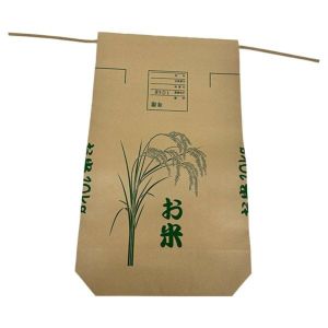 窓なし、印刷付き・ひも付きの米袋。