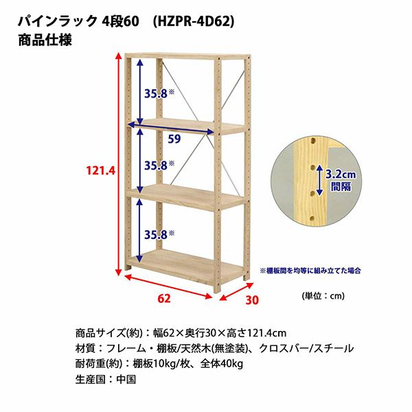 他の画像を見る 天然木を使用したシンプルな4段収納ラック 直送 日時指定不可 エイ・アイ・エス パインラック4段60 NA HZPR-4D62 NA 沖縄・離島配送不可 8日~9日で発送(土・日・祝祭日を除く) 価格 ¥ 8,930 税込 カートに入れる お気に入りに登録する
