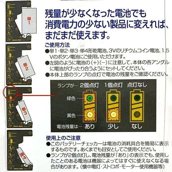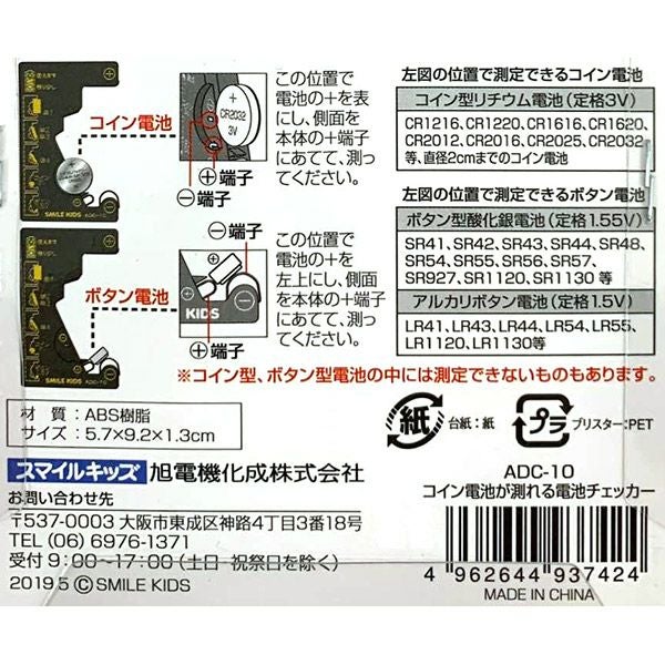 他の画像を見る 単1からコイン電池まで多くの種類に対応 旭電機化成 スマイルキッズ コイン電池が測れる電池チェッカー ADC-10 バッテリーチェッカー 価格 ¥ 1,480 税込 カートに入れる お気に入りに登録する