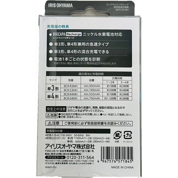 他の画像を見る 1回の充電で長く使える充電式 アイリスオーヤマ ビックキャパ リチャージ 急速充電器セット 単3形4本パック付き BCR-SQC3MH/4S 価格 ¥ 2,980 税込 カートに入れる お気に入りに登録する