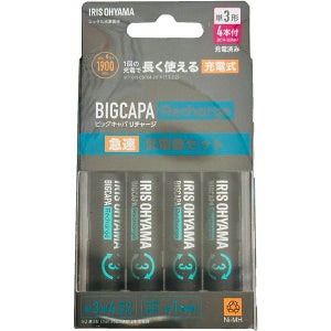 アイリスオーヤマ ビックキャパ リチャージ 急速充電器セット 単3形4本パック付き BCR-SQC3MH/4S