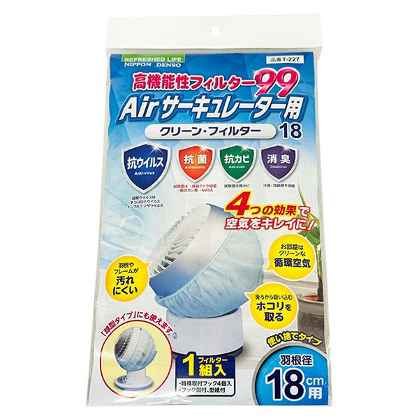 他の画像を見る 4つの効果で空気をキレイに!サーキュレーターカバー 即日出荷 日本デンソー 高機能性フィルター99 Airサーキュレーター18 T-227 羽根径18cm用 クリーンフィルター カバー 価格 ¥ 1,380 税込 カートに入れる お気に入りに登録する