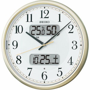 温度・湿度やカレンダーが表示され、暗い場所でもライトが点灯し、大きくて見やすい掛け時計。
