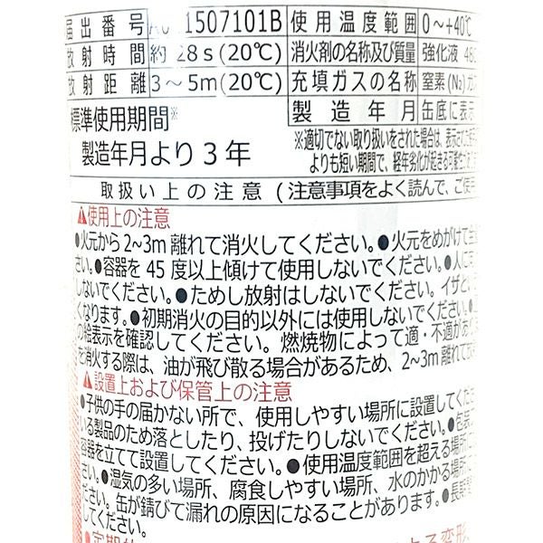 他の画像を見る もしもの時の初期消火に 即日出荷 丸山製作所 火消しスプレー 1-8052-11 初期消火 家庭用 小型 消火器 消火剤 防災 価格 ¥ 1,430 税込 カートに入れる お気に入りに登録する