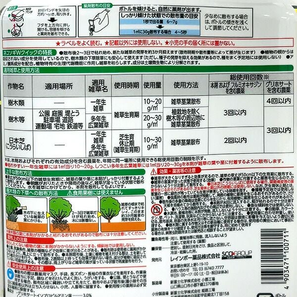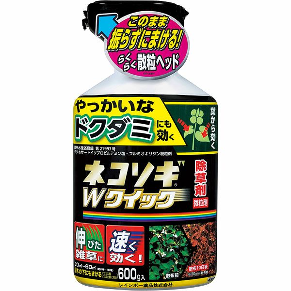 他の画像を見る 伸びた雑草に!速く効く! 即日出荷 レインボー薬品 ネコソギWクイック微粒剤 600g 除草剤 雑草対策 お一人様25個まで 価格 ¥ 1,380 税込 カートに入れる お気に入りに登録する