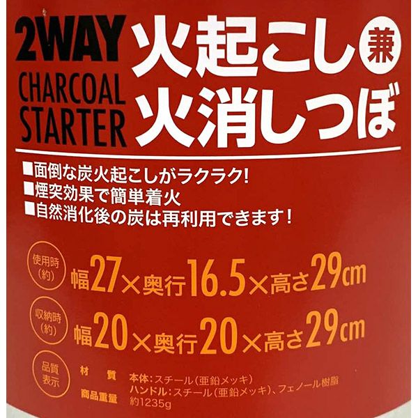 他の画像を見る 通気孔の開閉で火おこしと火消しが両方できる! 即日出荷 武田コーポレーション 2WAY 火起こし兼火消しつぼ FSK08-16 価格 ¥ 2,280 税込 カートに入れる お気に入りに登録する